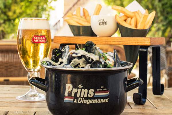 Enjoy steaming pots of mussels served with Belgian Fries, or add a pint.