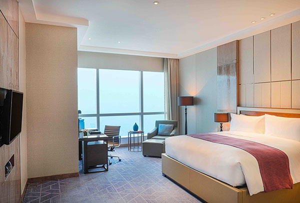 "الأجنحة الملكية هي ثاني أكبر الغرف لدينا، حيث تبلغ مساحة الجناح 148 متراً مربعاً ويطل على مناظر بانورامية رائعة للمدينة من خلال نوافذ ممتدة من الأرض حتى السقف. تصميمه يشمل غرفتين بتصميم داخلي معاصر ومنطقة معيشة كبيرة وغرفة نوم واسعة مجهزة بحمامين وحمام نصفي . ناهيك عن التلفزيون الذكي ونظام صوت Club InterContinental زهور بشكل يومي. الأجنحة الملكية تشمل خدمة الدخول إلى ردهة نادي إنتركونتينتال