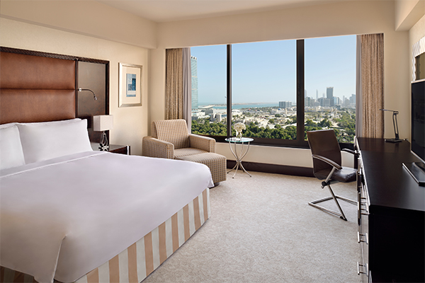 Admire the breathtaking garden views from your Classic King room, located from the 3rd to the 12th floors. These elegantly furnished rooms come equipped with a plush king-sized bed to sink into, a cosy sofa, a workspace for catching up on e-mails and a lavish marble bathroom with a shower and separate bathtub. Connect with friends and colleagues using our fast, complimentary Wi-Fi, and wake up every morning to stunning panoramas over the Abu Dhabi skyline and the lush green gardens of Baynona Park.